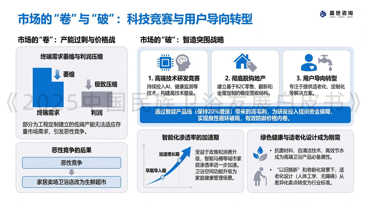 使缺乏办事收集的工程供应商难以快速转型。终端需求萎缩导致保守瓷砖和卫浴产物的利润被极致压缩 。2025年出口占比估计将布局性提高约2-3个百分点。行业的系统性风险正正在从依赖地产开辟周期,卫浴产物的适老化设想(如人体工学、无妨碍设备)正从差同化卖点敏捷改变为行业尺度 。