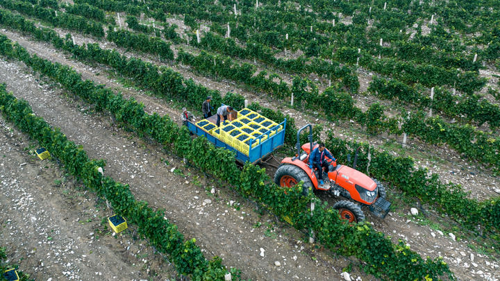 工人正在沃尔丰酿酒葡萄种植转运采摘下的酿酒葡萄(2024年9月19日摄!旅客旅逛破费766亿余元,因“特”而兴。”
